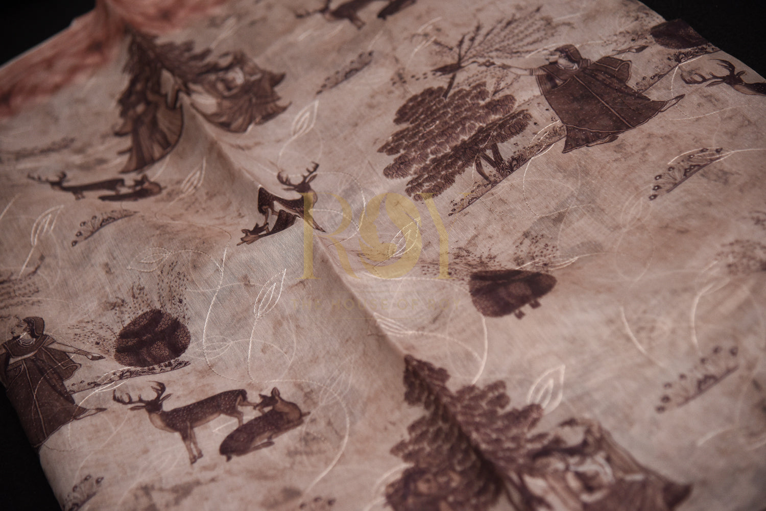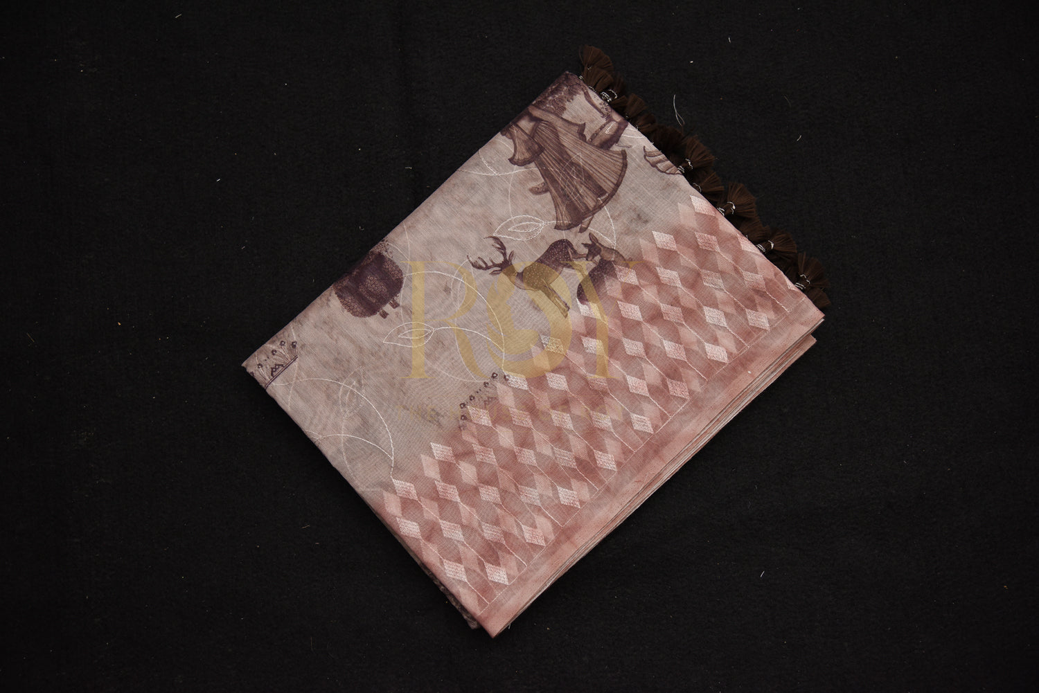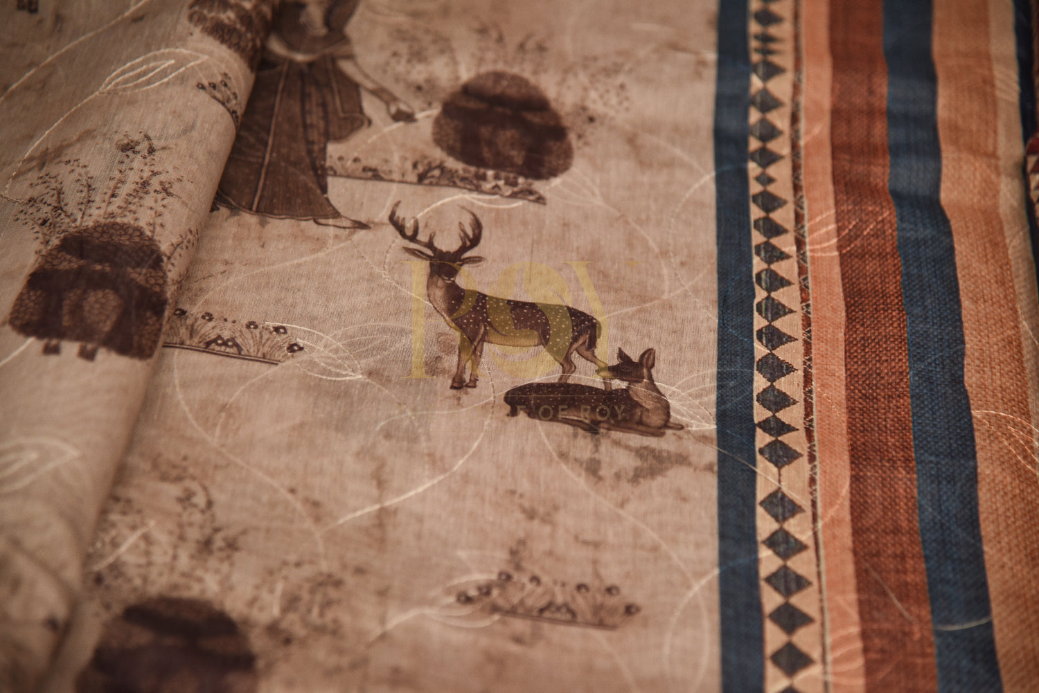 Aqua Blue Digital Print Art Silk Saree with Brasso