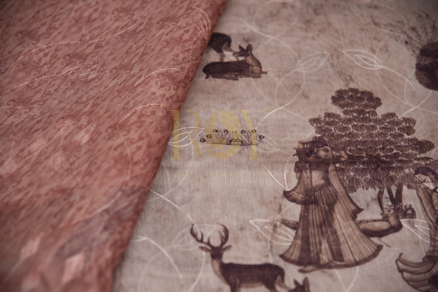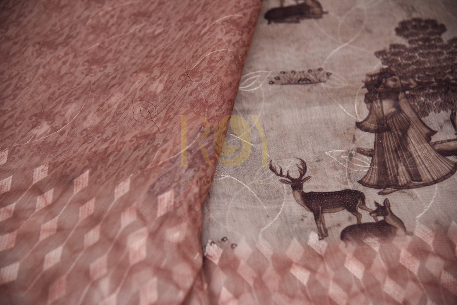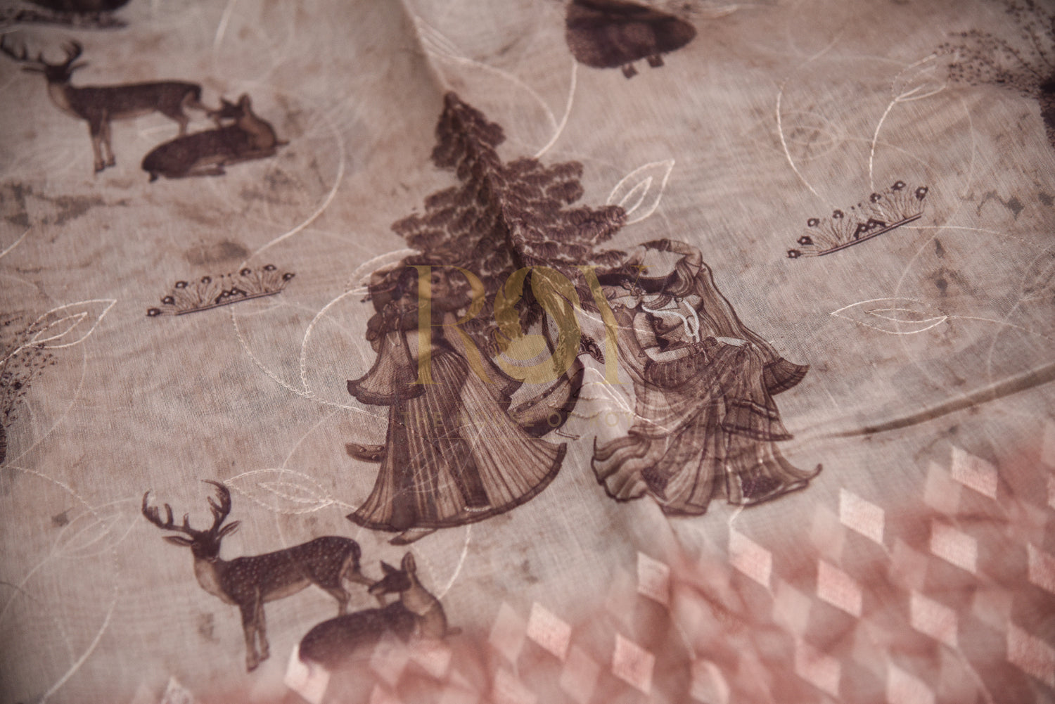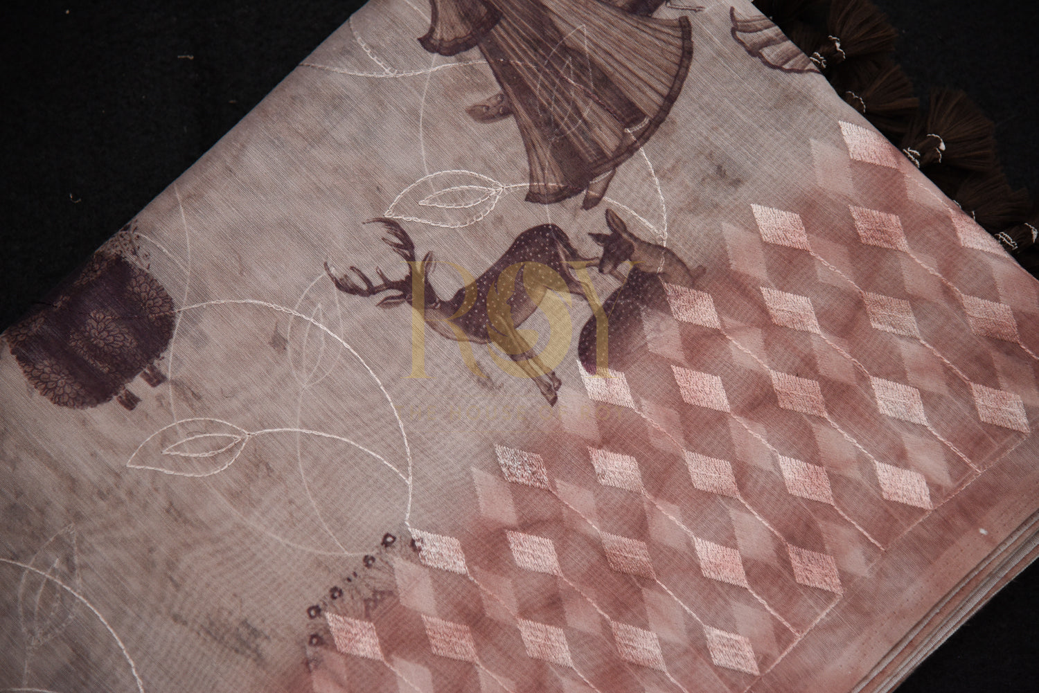 Aqua Blue Digital Print Art Silk Saree with Brasso