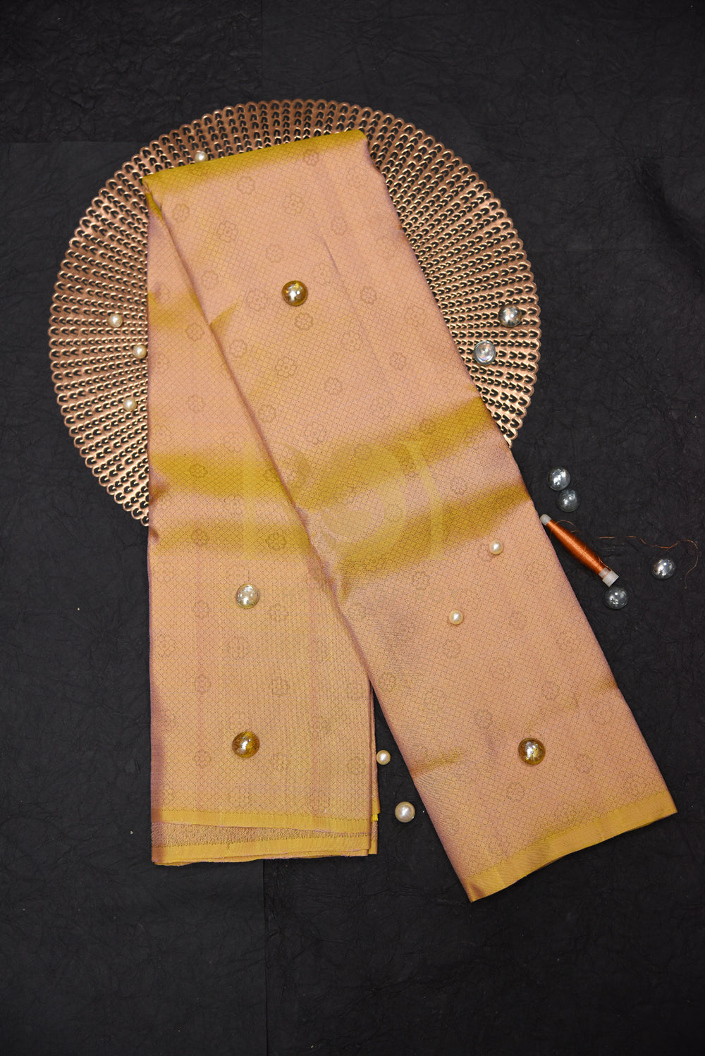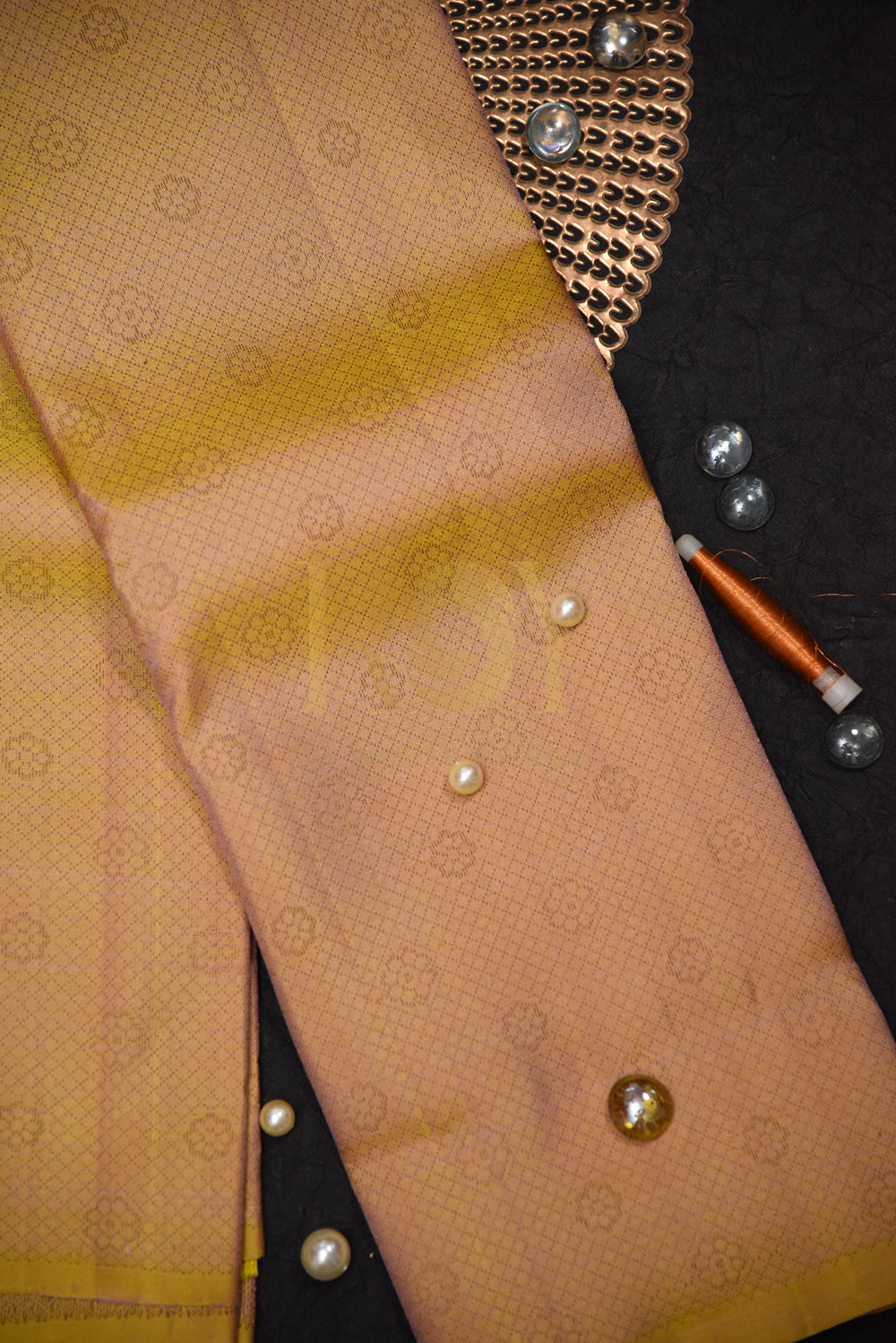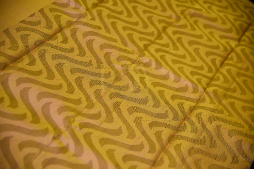 Unveil your inner sunshine in this captivating Pure Kanchipuram Silk Saree! Woven from the finest silk threads, this Kanjeevaram saree embodies the rich heritage and artistry of Kanchipuram silk weaving. Completed with a matching yellow silk blouse, this borderless pure Kanchipuram silk saree with self design & tiger stripe pallu is a statement piece waiting to be yours.