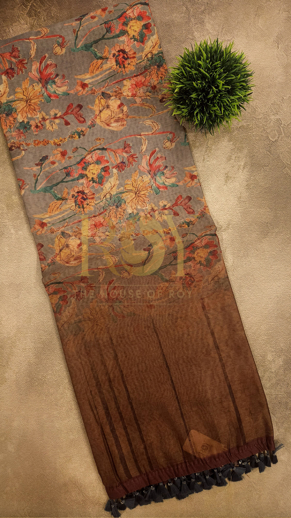 Brown Printed Mix Cotton Saree