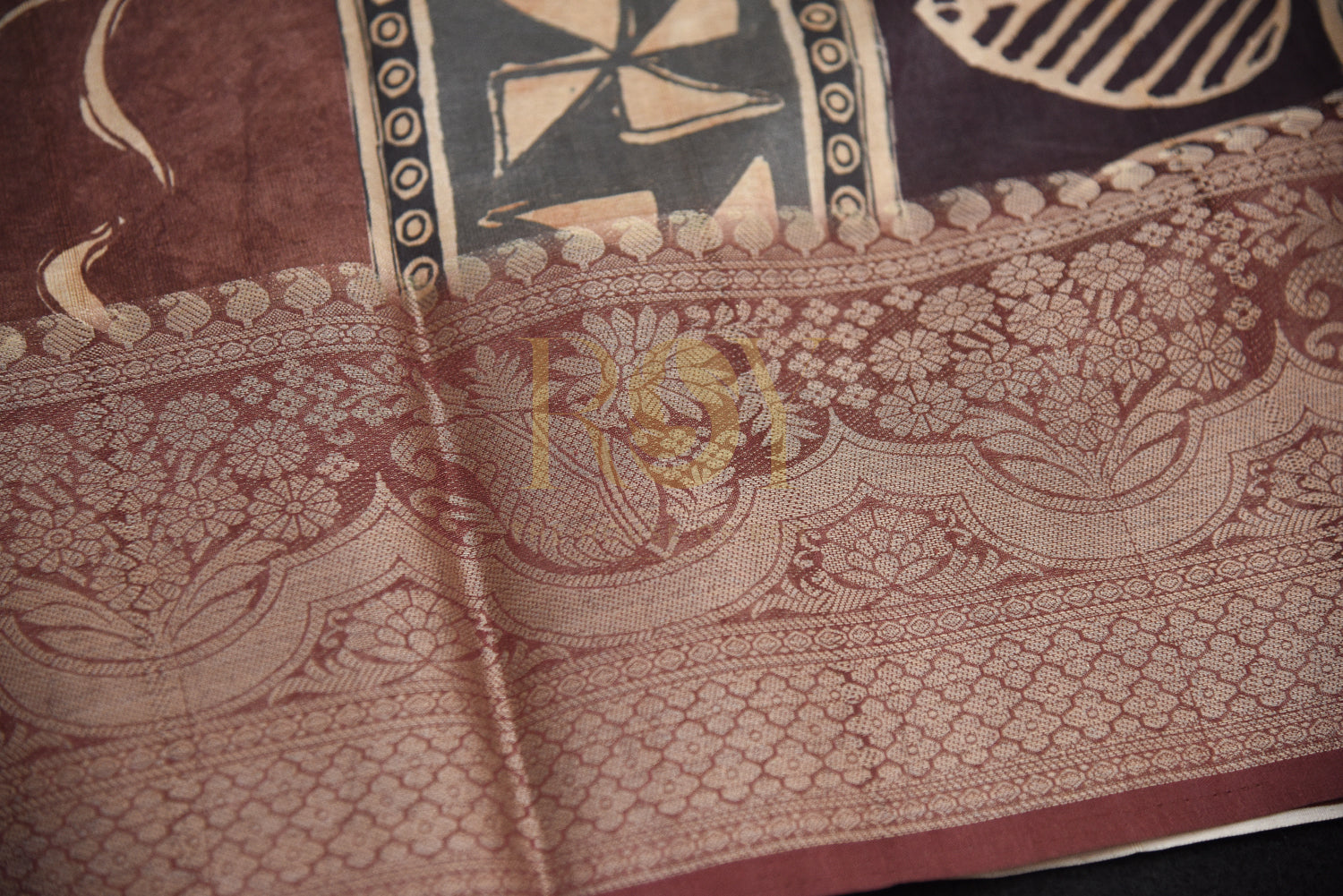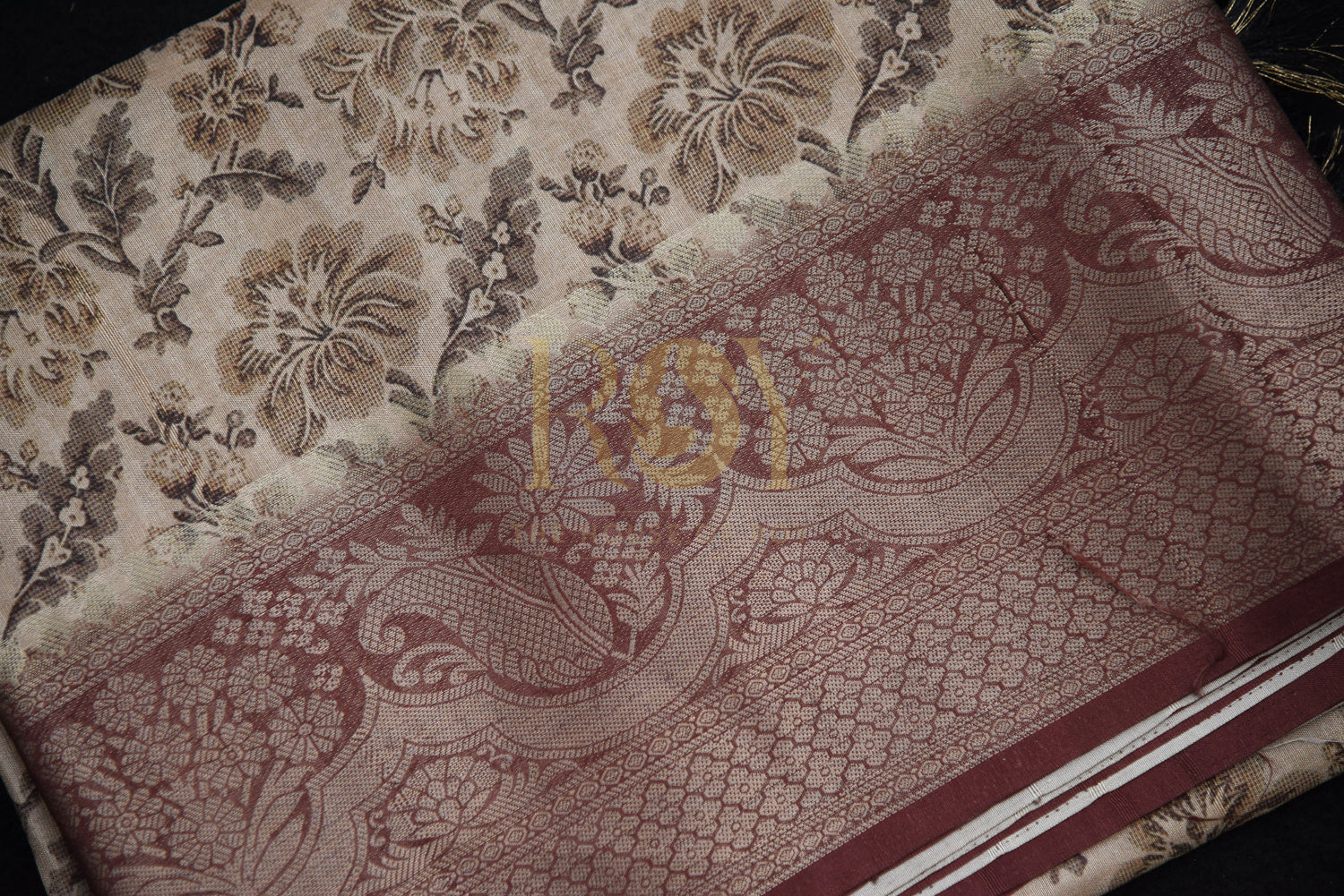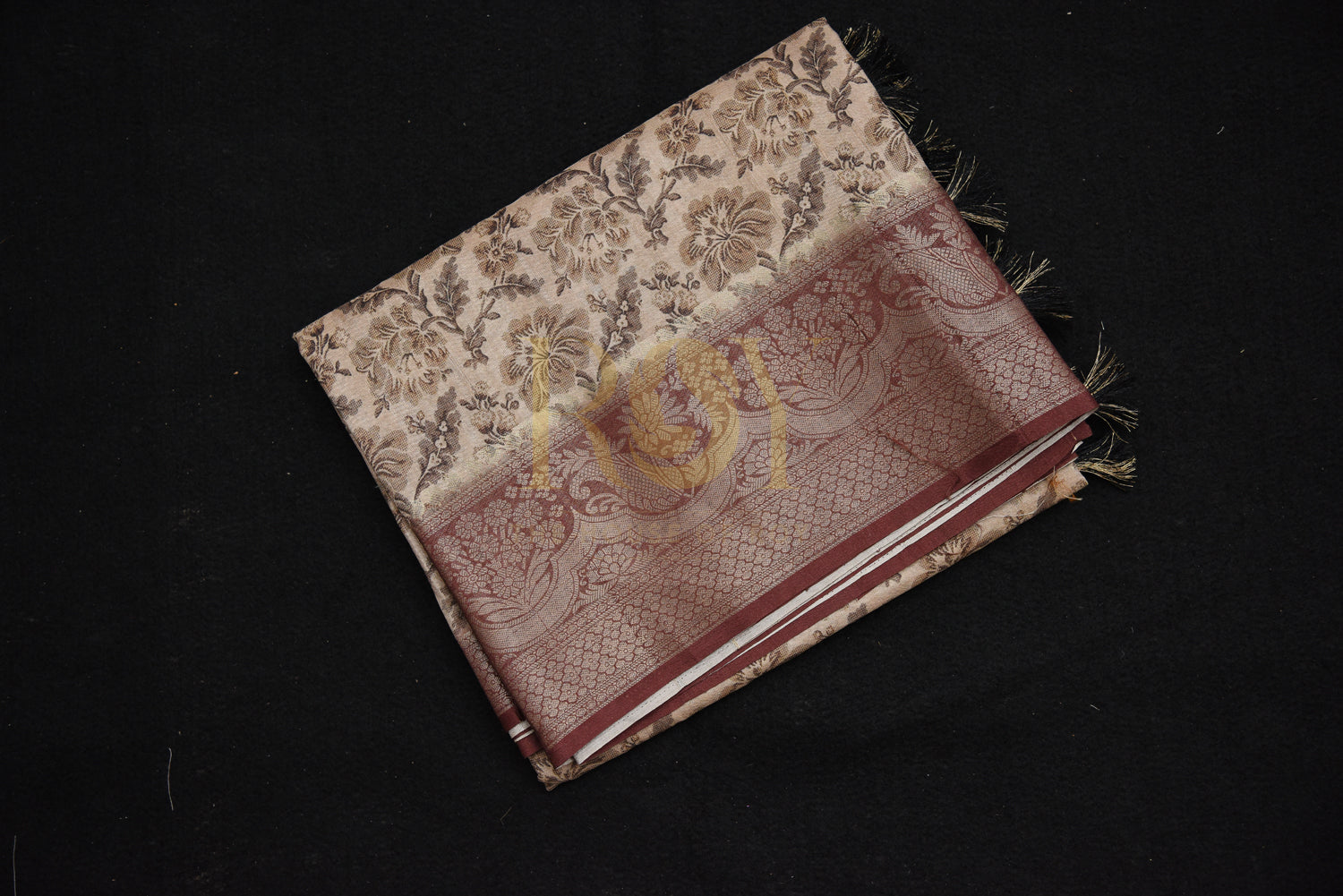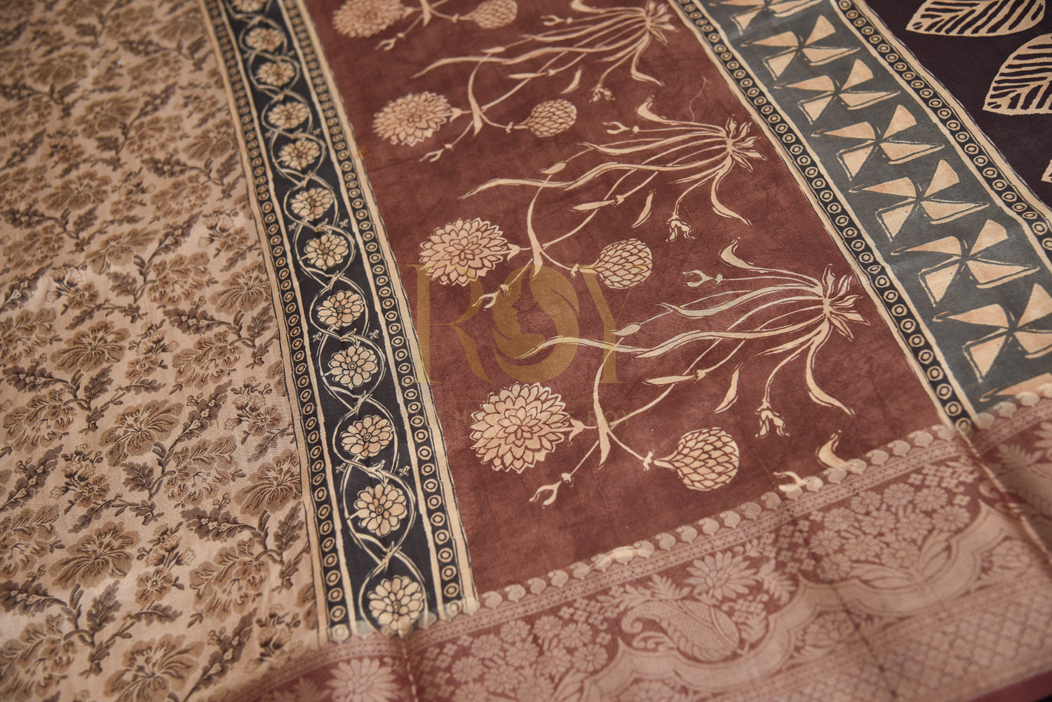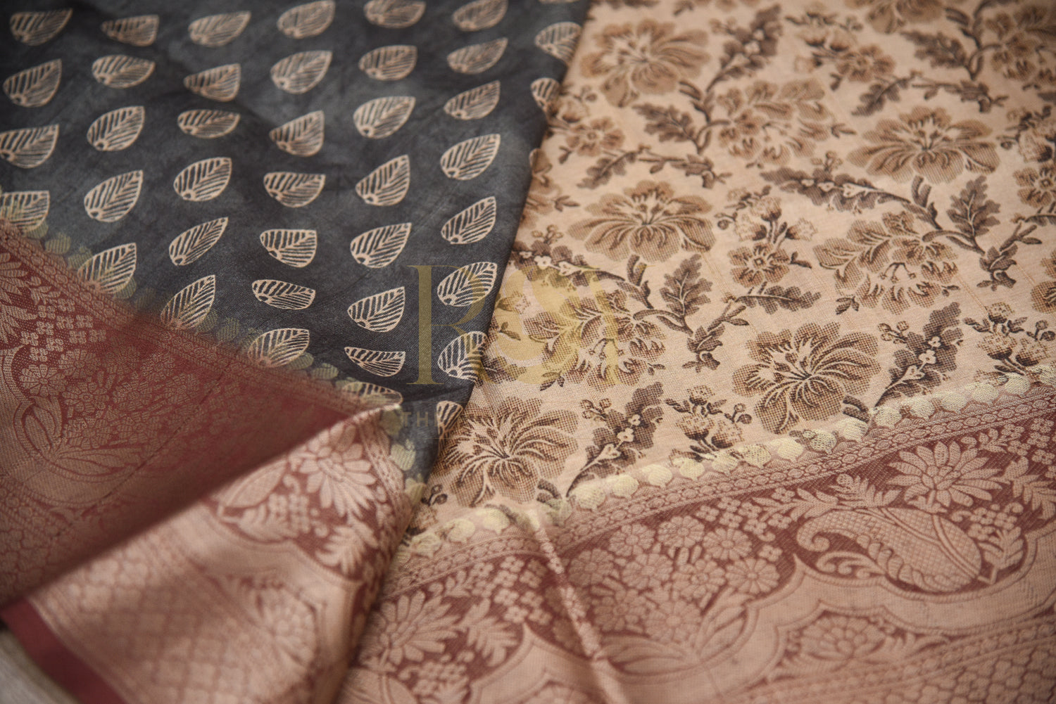 Digital Printed Mix Cotton Saree With Grey Hibiscus Motif