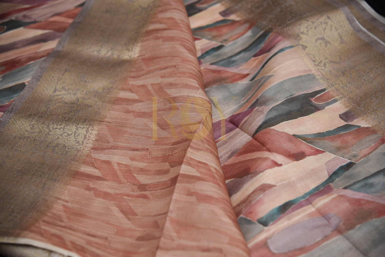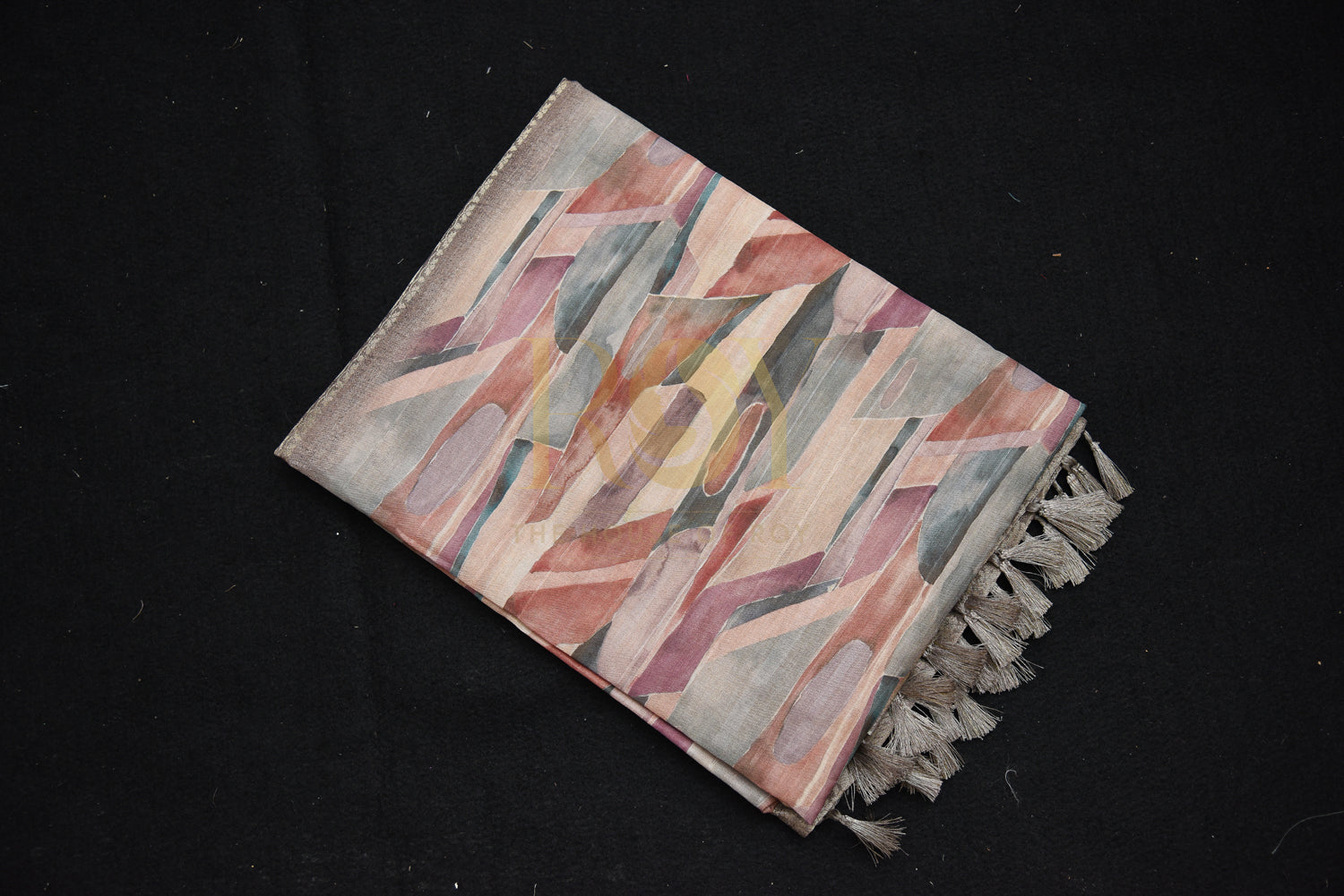 Digital Printed Mix Cotton Saree with Jari & Contrast Blouse
