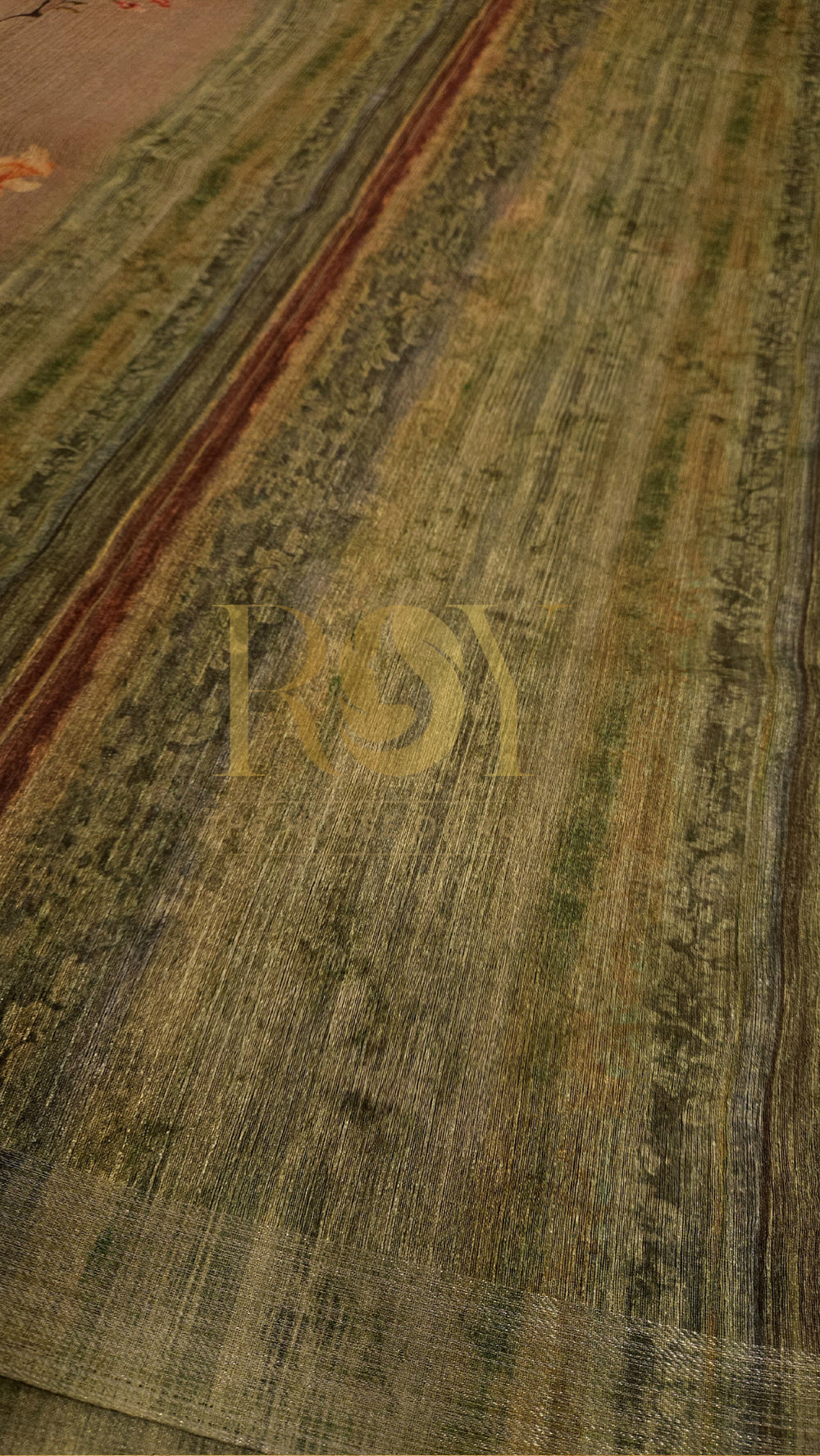 Dusty Peach Floral Digital Print Linen Silk Saree