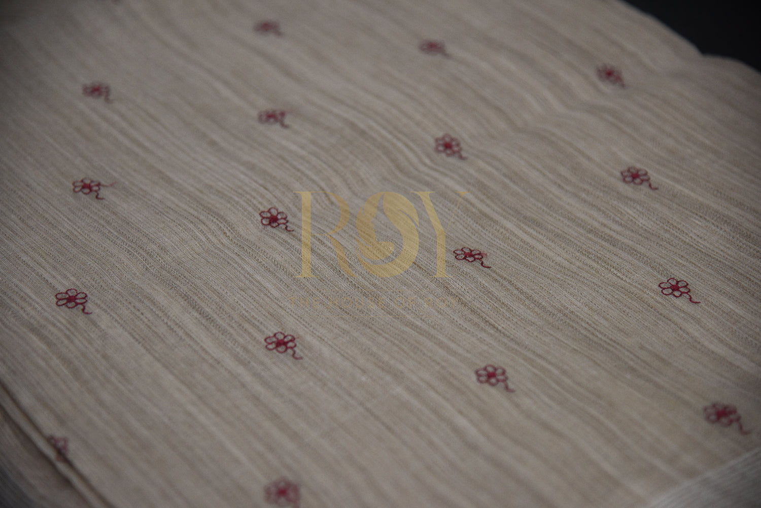Jute Cotton Embroidery Saree With Contrast Blouse