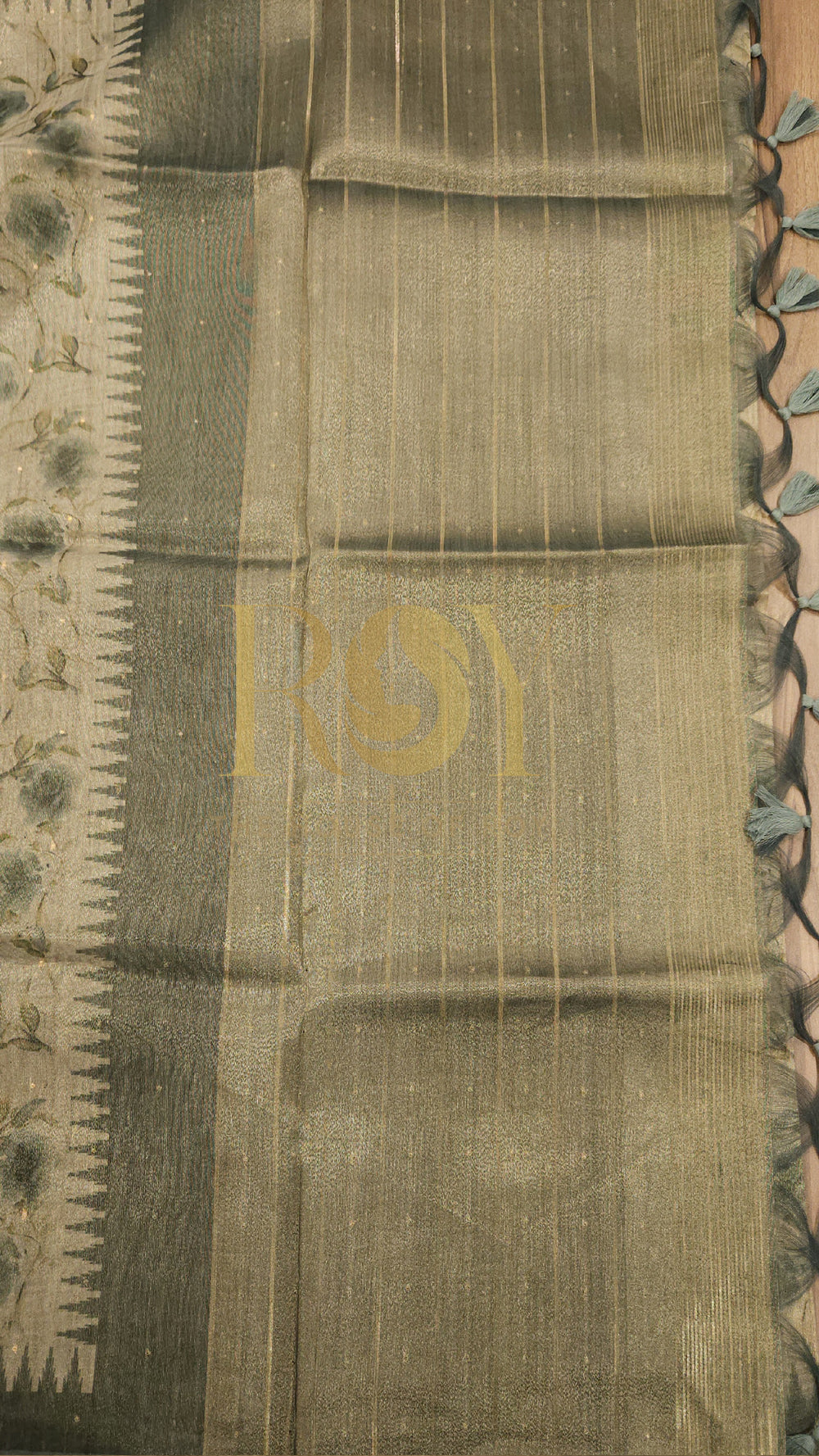Green Floral Digital Print Tissue Saree