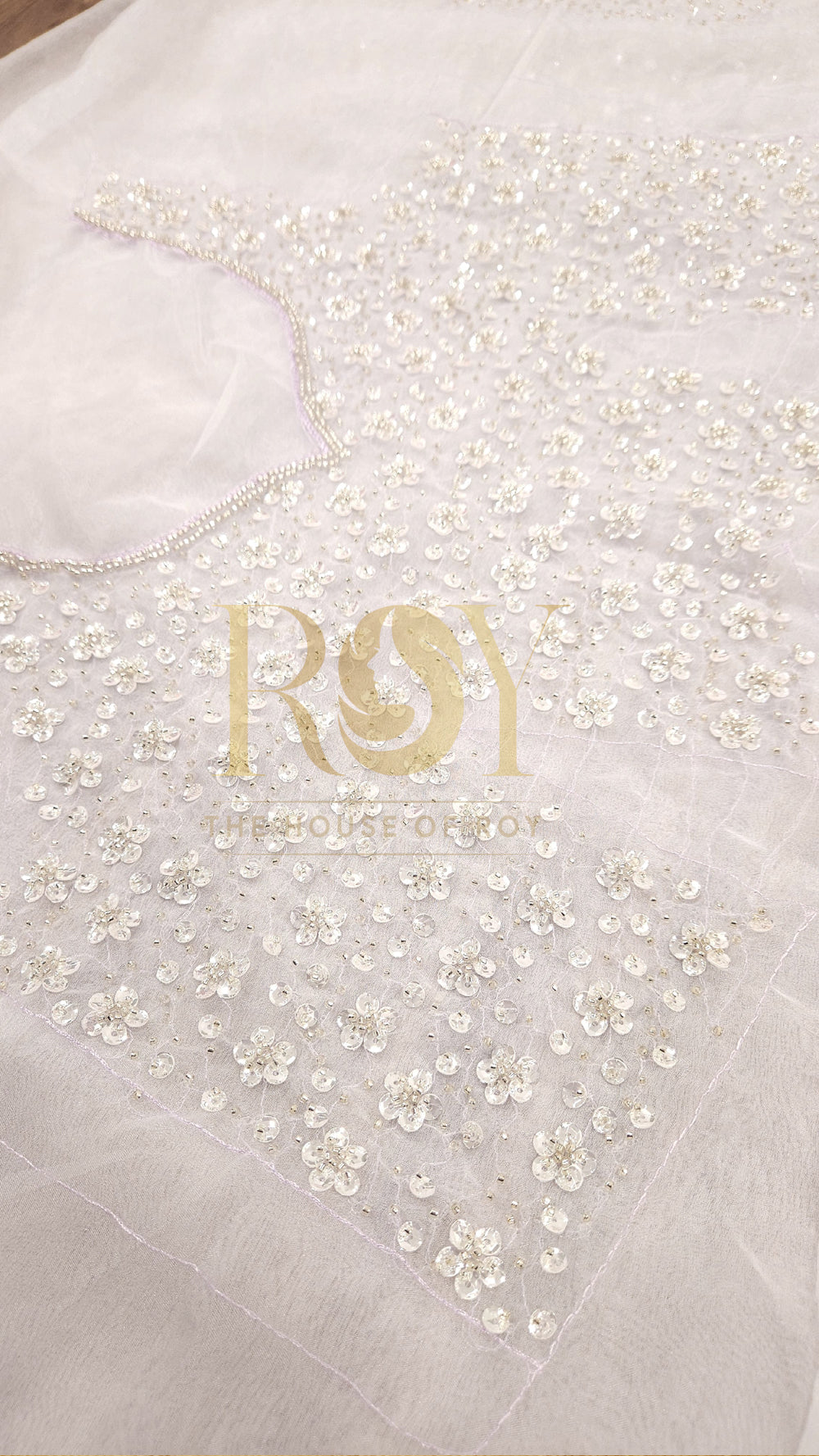 Ivorish lavender organza designer saree