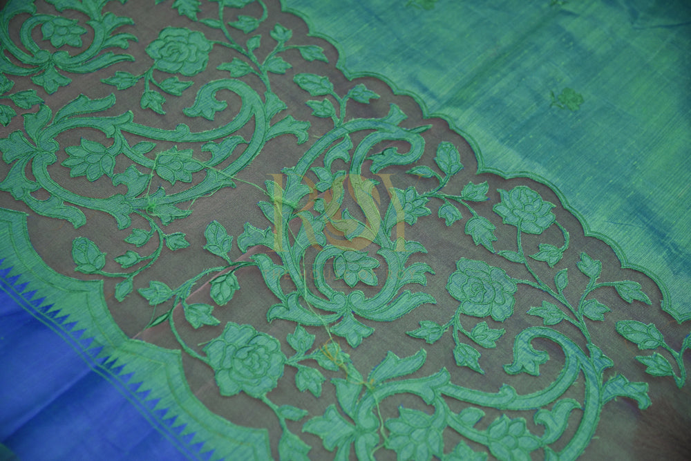 Leaf Green Silk Cotton Saree with Contrast Blue Border