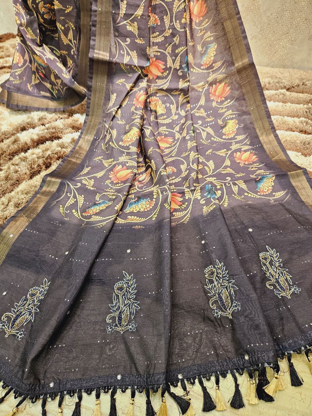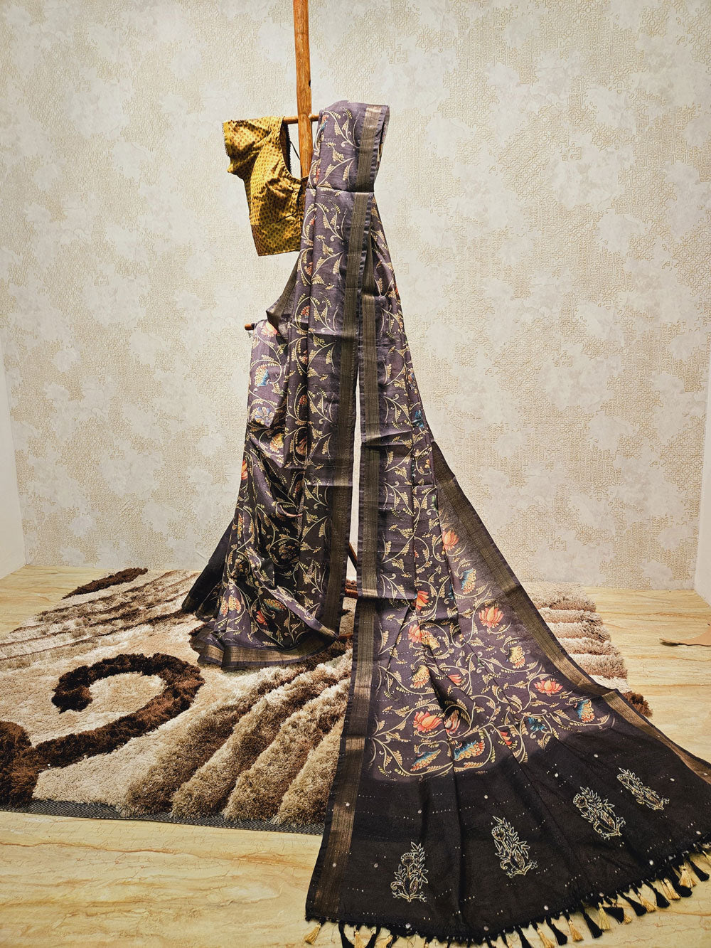 Matka Silk Saree with Kalamkari Print