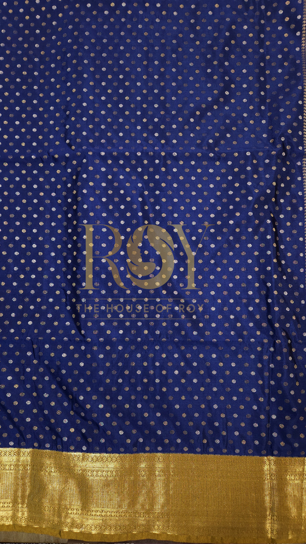 Navy Blue Polka Dot Luxury Soft Silk Saree