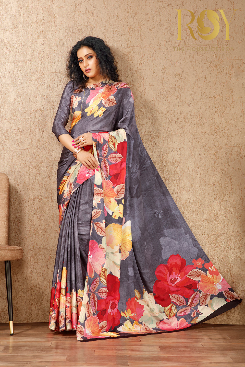 Printed Multicolor Soft Crepe Saree in Blue Colour