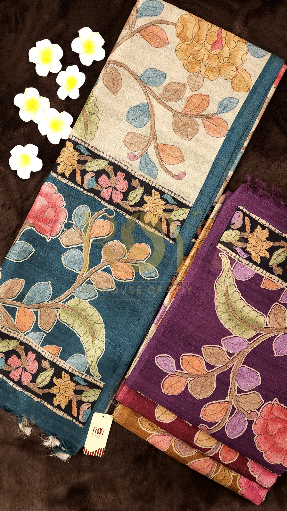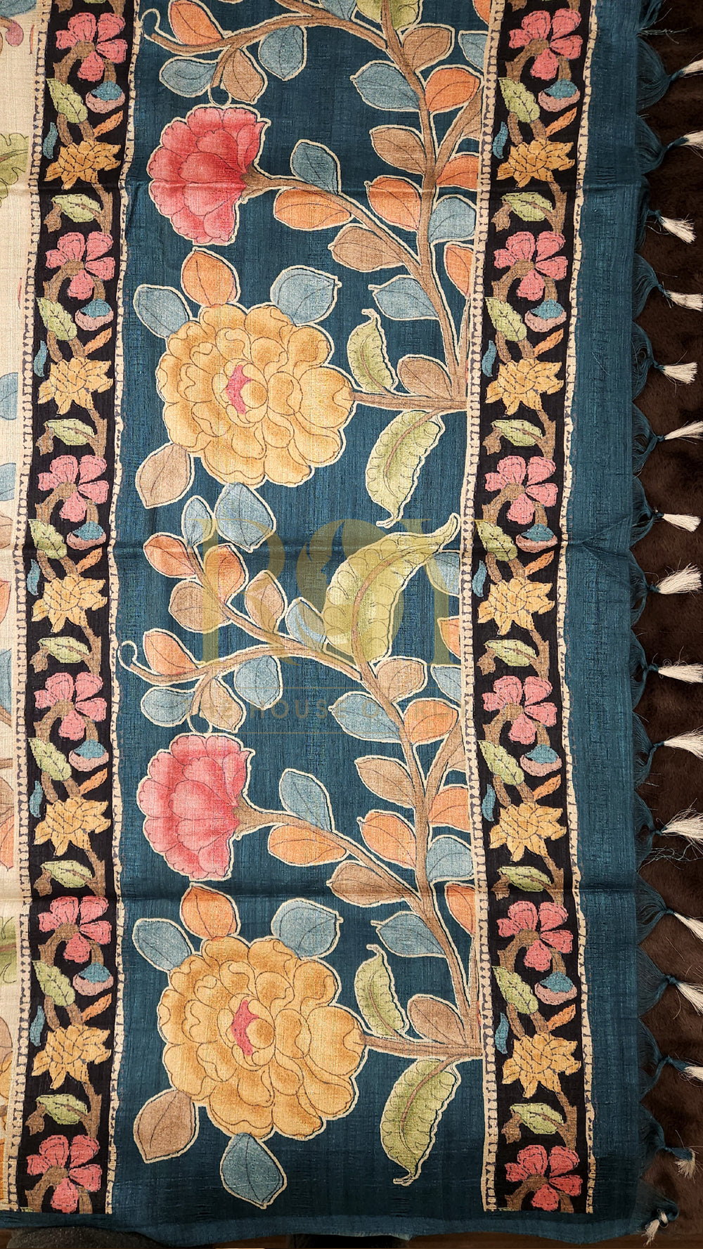 Teal Blue Kalamkari Print Mix Tussar Saree